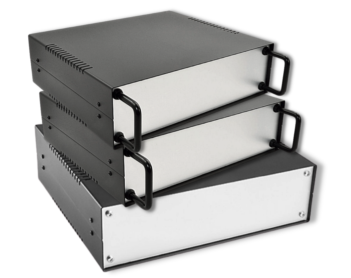 Obudowy Economica EP są wykonane ze stali 1 mm lakierowane proszkowo w kolorze czarnym. Panel przedni i tylny wykonane z aluminium 1 mm.